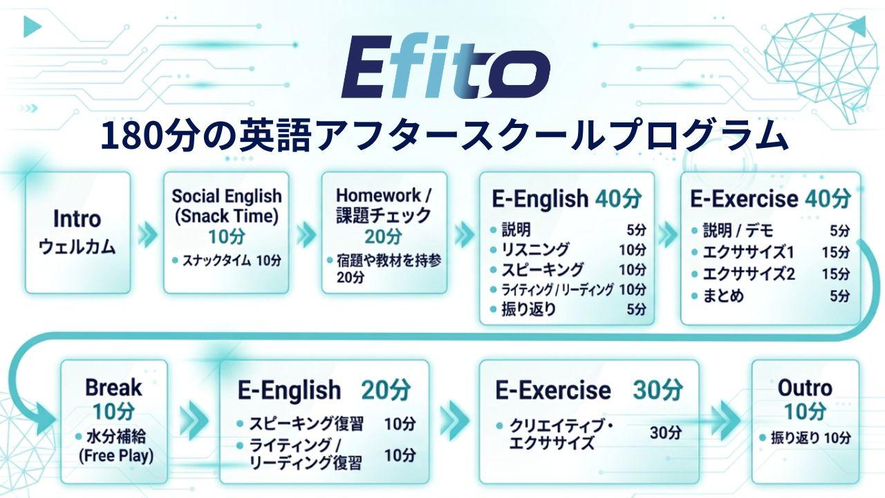 もちろん、180分のプログラムの中には、レギュラークラスの核となる「E-English」と「E-Exercises」がすべて含まれています。