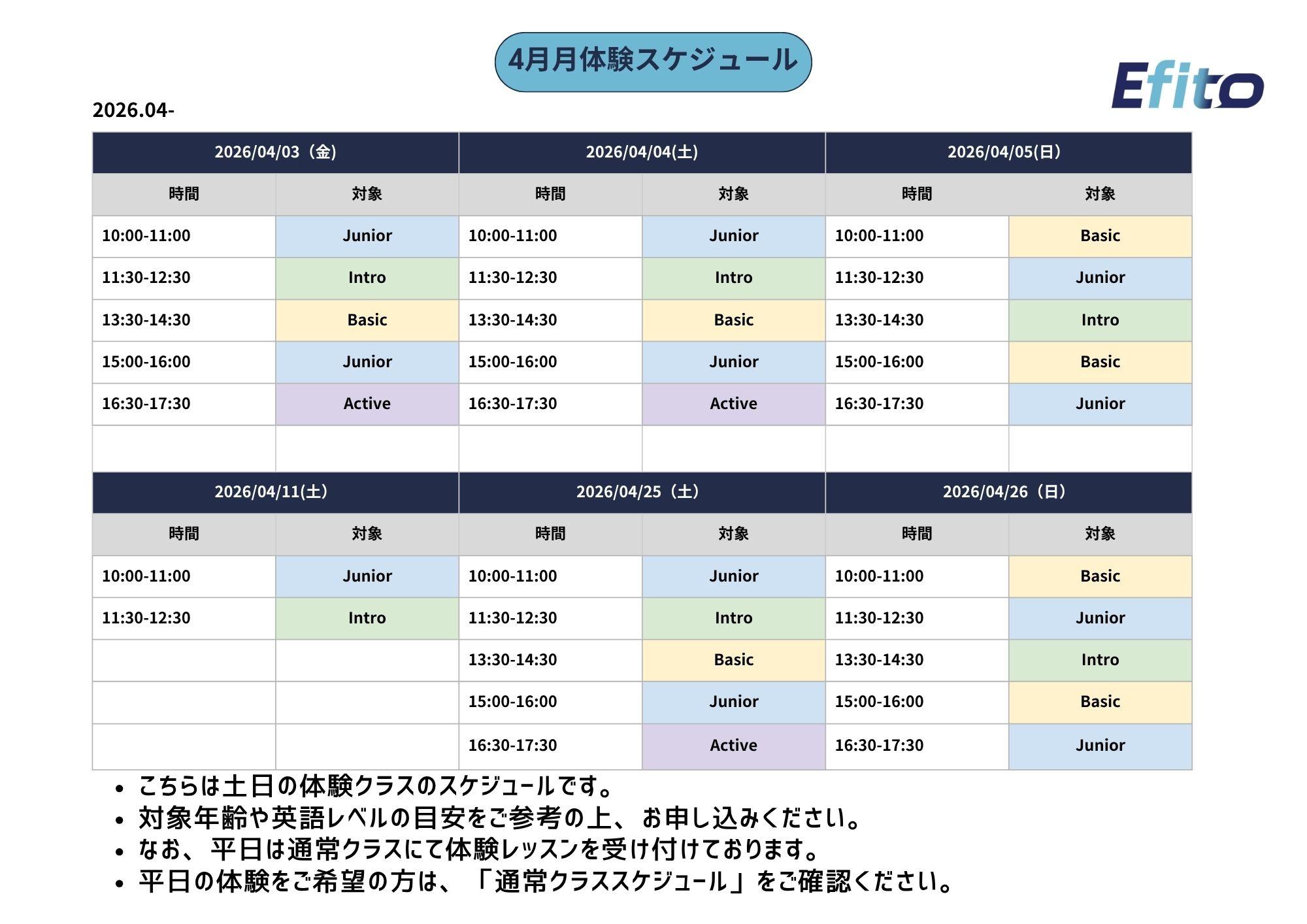 クラス空き状況 曜日・時間 |