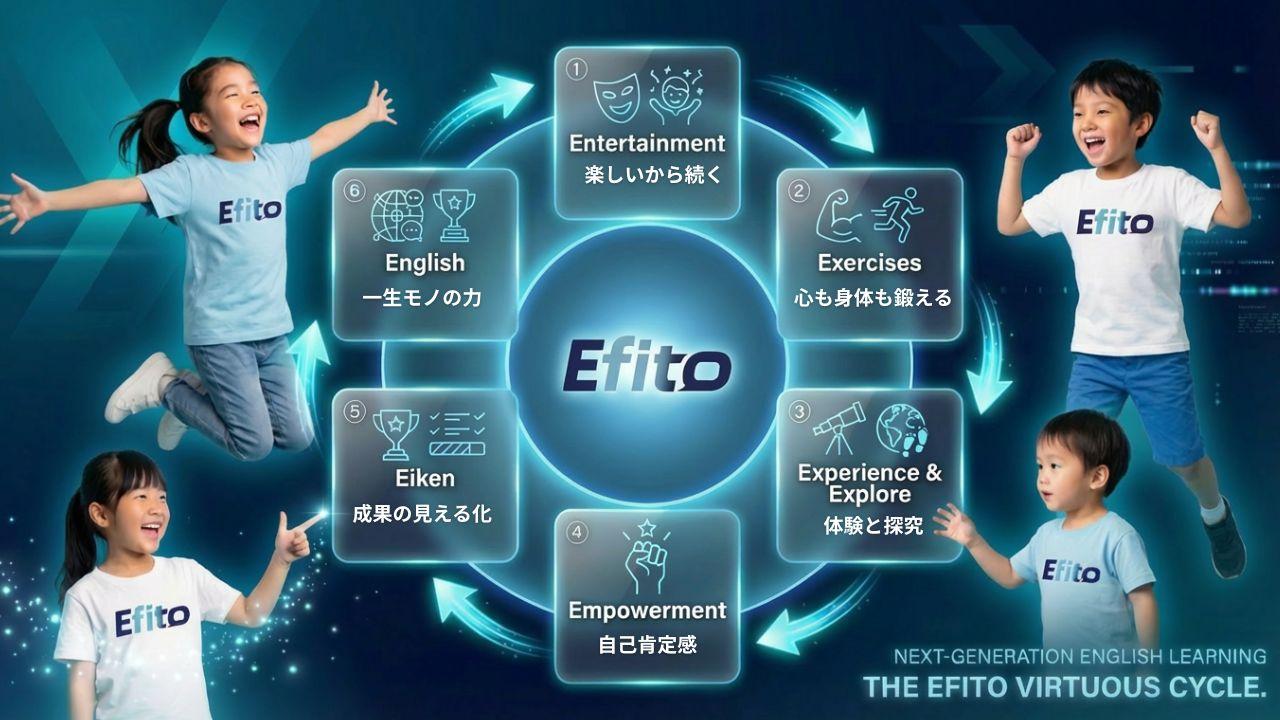 子どもたちが走り、笑い、失敗を恐れずに挑戦しながら、英語で世界と繋がっていく。 Efitoは、そんな「理想の学びのサイクル」を子どもたちに約束します。